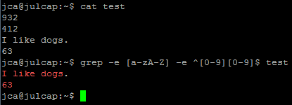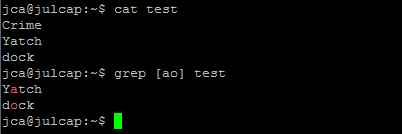 Brackets can be used to specify a set of characters like [ioe]. Grep will find all the lines that contain at least one of the specified characters inside the brackets.