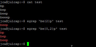 Curly braces allow to spedify a limit on a repeatable expression,{lower,upper} or just {min}.